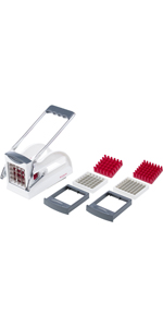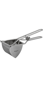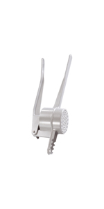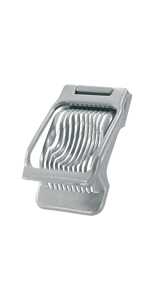 Use With 3 blade inserts for vegetable and fruit creations With stainless steel clamps ideal for the grill, rubberised handles protect against heat Very stable, cuts round and oval slices, handle bent upwards for easy handling Classic press with oblong holes for spaetzle, mashed potatoes, spaghetti ice cream, juice and more For easy cutting of cake and pie bases, 2 wires Classic, elegant, with perforations on both sides Material High-quality plastic, stainless steel Stainless steel, high-quality plastic Aluminium, stainless steel Aluminium Stainless steel Stainless steel Dishwasher safe – ✓ ✓ ✓ ✓ ✓
