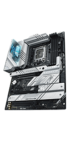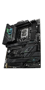 The ROG Strix Z790-A boldly embraces the light, for an alternate take on build themes to its dark and brooding brother, the Strix Z790-F. Silver metallic heatsinks pop against a dark PCB backdrop and call attention to the board’s high capacity for thermal management. A transparent layer on the I/O shield adds a unique touch and emphasizes the customizable RGB logo below. The whole design is tied together with ROG-centric detailing on the board, heatsinks, and I/O shield for a vibrant and futuristic outlook. Pair the Strix Z790-A with other products from the diverse ROG ecosystem to create a fully-customized gaming setup that reflects your personal style.