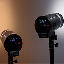 These lights provide impressive light quality and are relatively light weight. Fully adjustable with high speed sync.