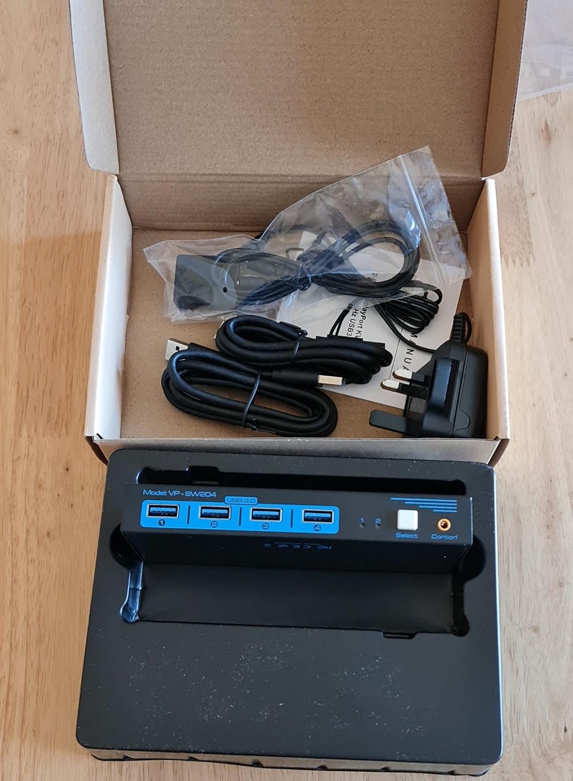 The unit is quite small and can be hidden away if you use the wired push-switch to make the change over. Power pack and two USB cables are provided in the box.