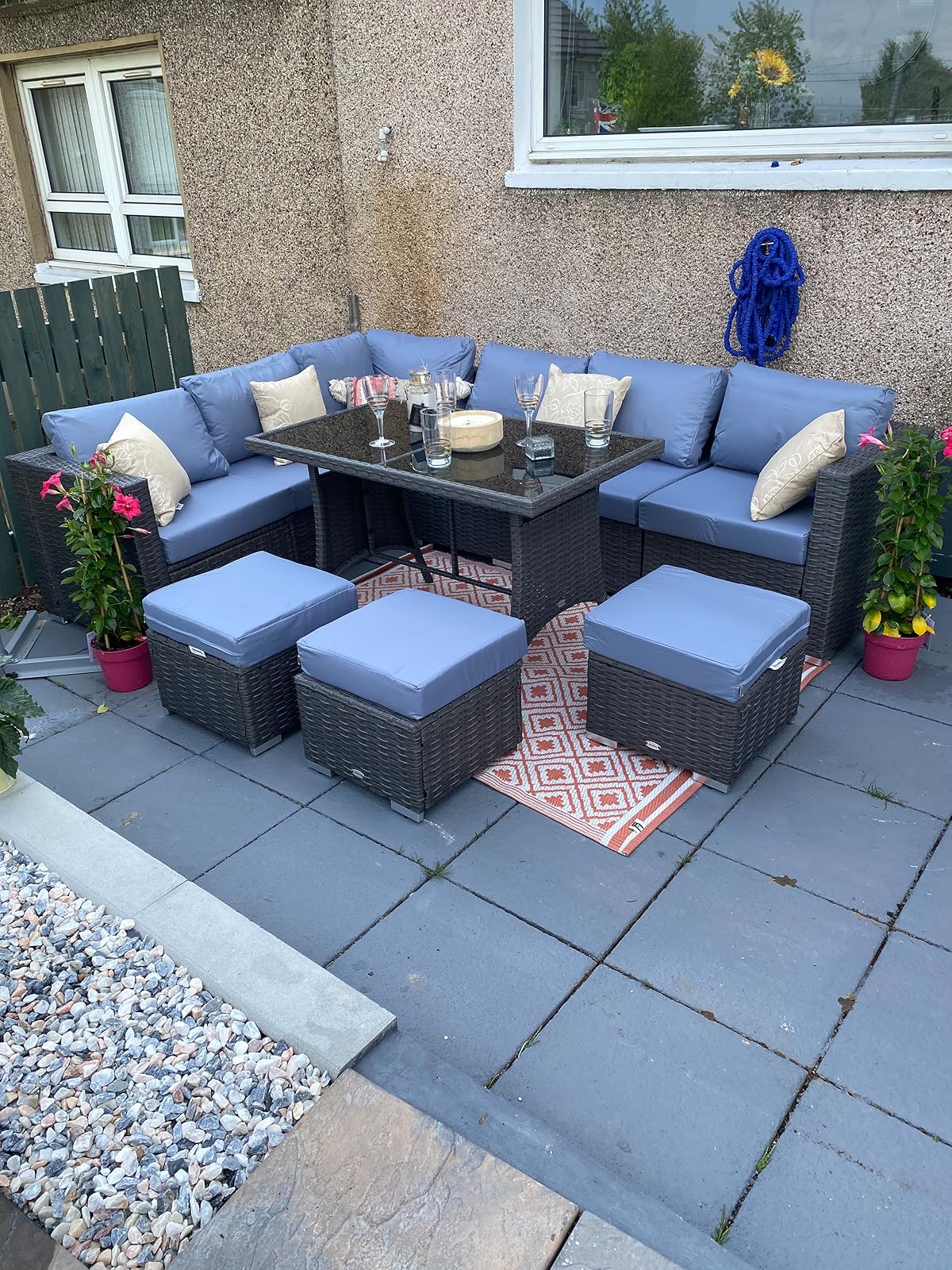 I’m very pleased garden sofa set and feel I got good value for money. I’m not a DIY expert but found the assembly instructions really easy to follow. It took me about 6 hours to assemble the full set.