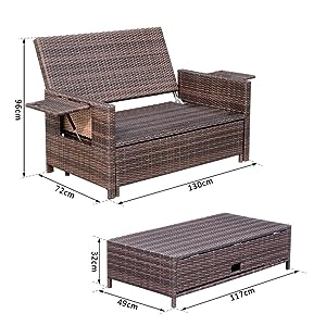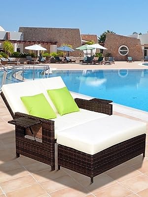 Outsunny 2 Seater Assembled Garden Patio Outdoor Rattan Furniture Sofa Sun Lounger Daybed with Fire Retardant Sponge – Brow