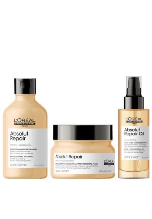 L'Oréal Professionnel Trio Routine, Serie Expert, Absolut Repair Molecular Shampoo, Serum & Leave-I