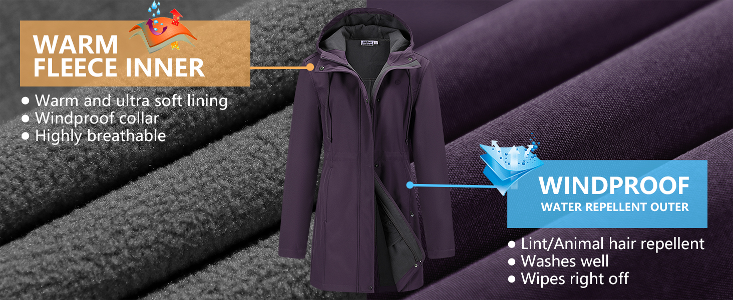 I bought this for dog walks in spring and autumn and it is a perfect match. It is not completely waterproof, but does the job in pretty heavy rain for half an hour. The sleeves do tend to get wet after a time and need drying out. The soft warm lining, makes the jacket suitable for colder days during spring and autumn. A lovely colour, too.