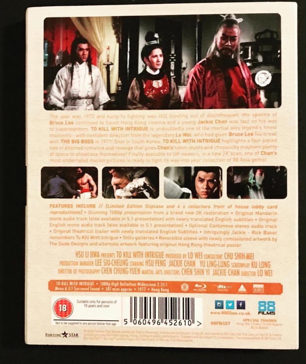 To Kill With Intrigue is one of the better early Jackie Chan films I’ve seen. There’s some gorgeous scenery and some excellent fight scenes, more than enough to be happy with my purchase. The video quality is pretty good through out and will make a nice edition to people looking for a good old school kung fu film.