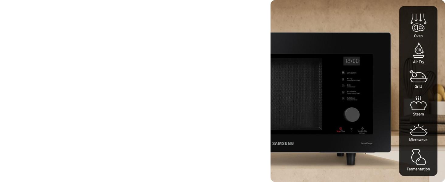 The Samsung Combination Microwave lets you oven cook, grill, steam, air fry, microwave and even ferment ingredients, like dough and yoghurt, in a single oven