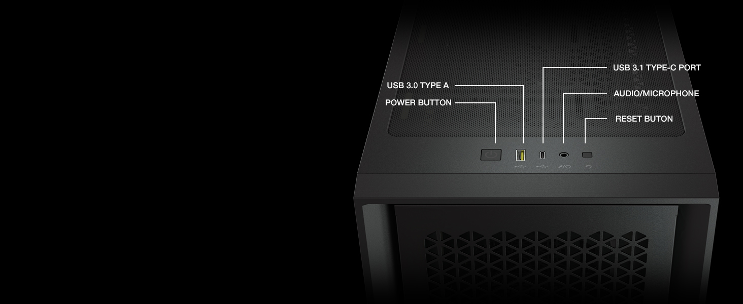 The modern front panel I/O panel includes a USB 3.1 Type-C Port, USB 3.0 Port and a combination audio/microphone jack.