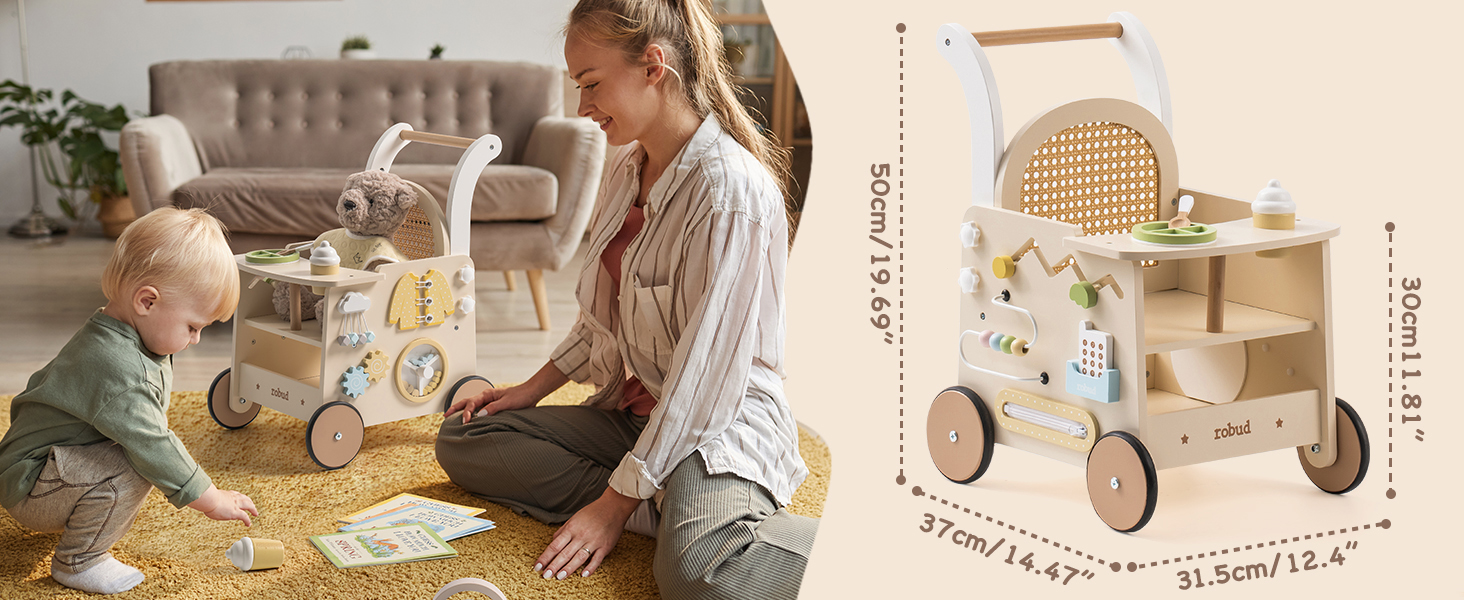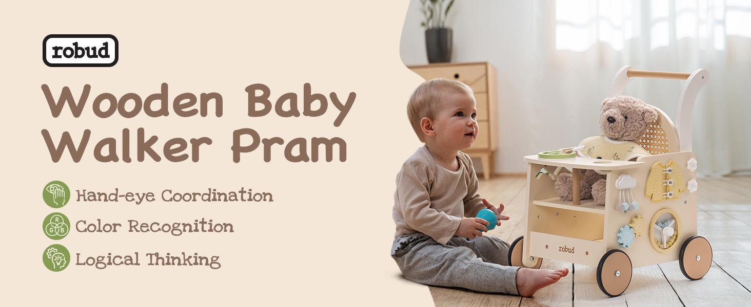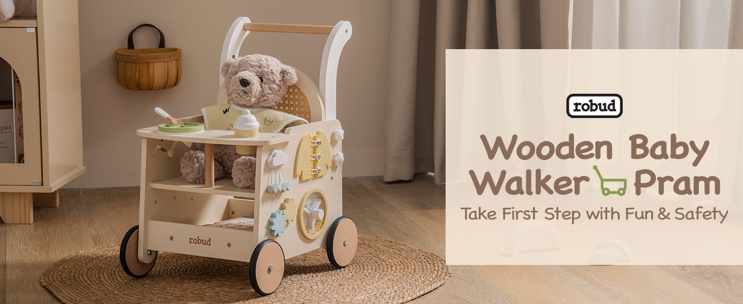 ROBUD Wooden Toodler Baby Walker, Baby Doll Stroller Toys