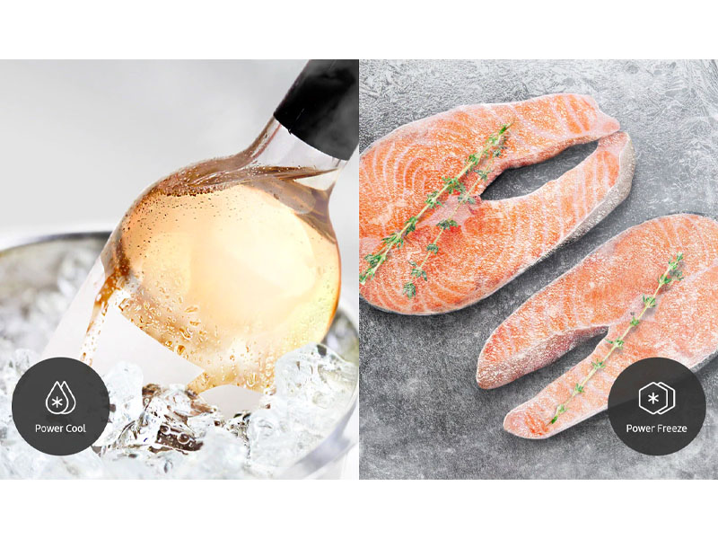 Enjoy a rapid cooling performance. At the touch of a button, Power Cool blows intensely cold air into the fridge to quickly cool your groceries or favourite drinks. Power Freeze delivers a fast blast of cold air into the freezer. It’s great for freezing or firming up frozen food and making ice.