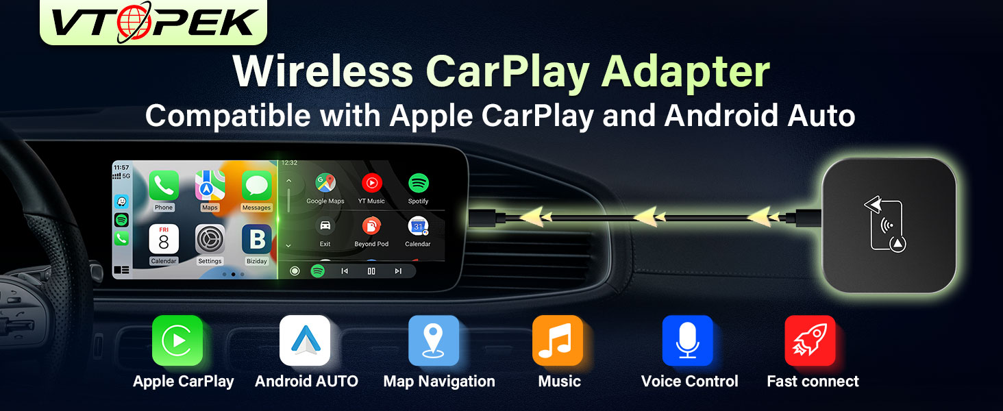 Vtopek Wireless Carplay 2 in 1 Apple Car Play Android Auto