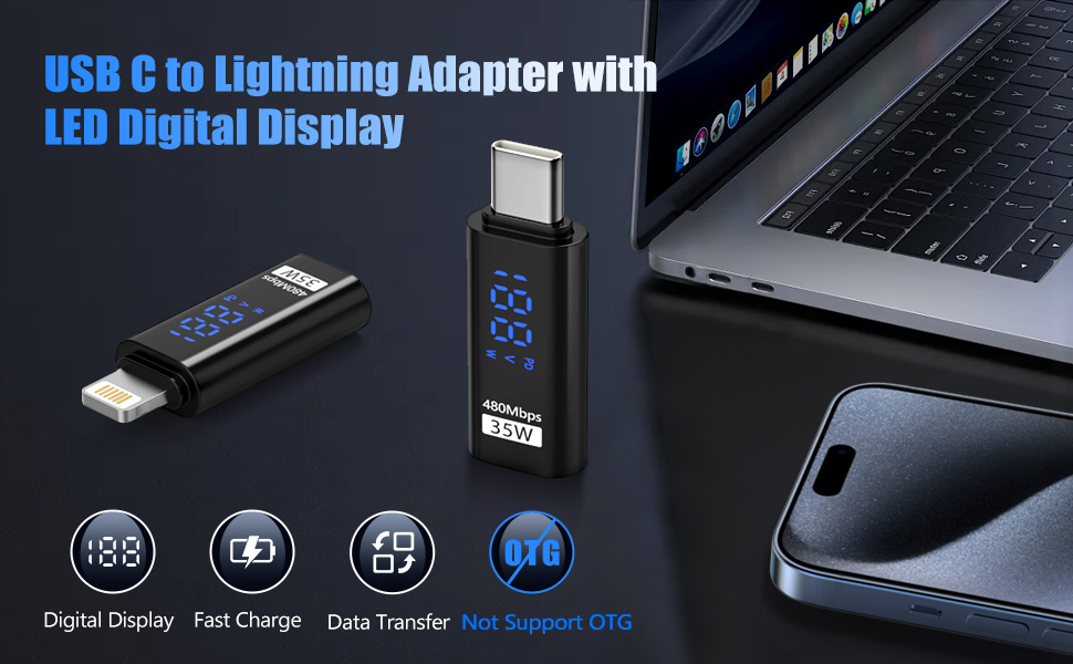 TiMOVO USB C to Lightn-ing Adapter with LED Digital Display
