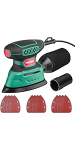 HYCHIKA 140W Detail Electric Sander, 13000 OPM Mouse Sander Efficient Dust Collection, with 12PCS Sanding Sheets, Ideal for Sanding Wood and Removing Rust and Pai