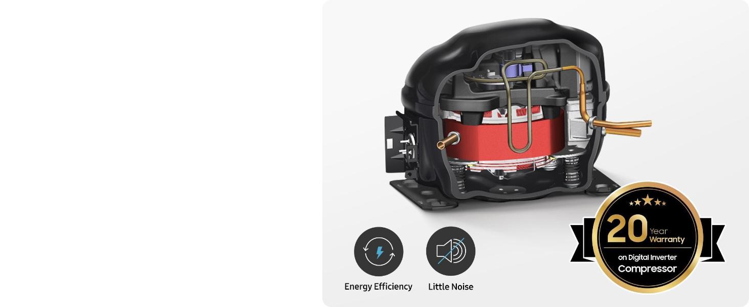 The Digital Inverter Compressor automatically adjusts its speed in response to cooling demand.