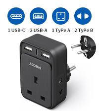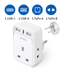 UK to European Plug Adapter with 1.5M Extension Cable, UK to European Plug Adaptor with 4 USB Ports(1 20W USB C Ports) and 1 Shaver Adapter Plug for Universal Shaver/Toothbrush. You can use 9 devices simultaneously.