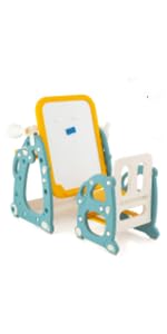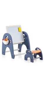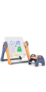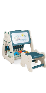- Double-sided whiteboard and chalkboard allows two kids to draw at the same time