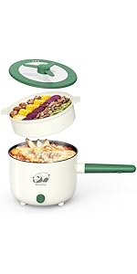 Electric Hot Pot with Steamer, Portable Nonstick Frying Pan with Dual Power C…