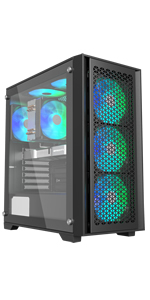HCS HellCracks features 4 preinstalled 12cm ARGB fans, 5V 3-pin ARGB & PWM fan hub, ATX, Micro ATX, ITX tempered glass gaming case (HCS404W)