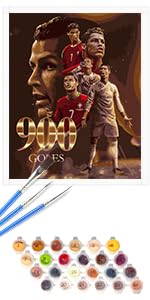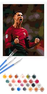 Lixkuokuo Football Painting by Numbers with Wooden Frame for Adults Beginners Children from 6 Years, CR7 Football Painting with Canvas Brushes Acrylic Paints, 20 x 20 cm Small DIY Painting Kit fo