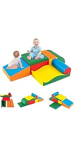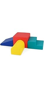 - Indulge your child’s creativity with this versatile 5-piece climbing blocks set, featuring a slide, step, half-moon, concave, and ball pit for endless shape combinations.
