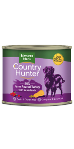 Natures Menu Country Hunter Dog Farm-Reared Turkey with Superfoods Tins 6x600g