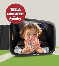 Onco Baby Car Mirror for Fixed Headrests – 100% Shatterproof & Shakeproof, Tesla-Compatible Car Mirror Baby Rear View, Non-Slip with 360° Rotatio