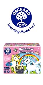 Orchard Toys Unicorn Fun! – 3 in 1 Educational Board Games for 4+ Year Olds – Unicorn Gifts for Girls and Boys – Number and Counting Games for Kids – Age 4-8 Years – 2-4 Players