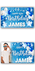 Personalised Happy Birthday Banner Backdrop Blue Pink Silver Customised Celebration Poster Fabric boy girl woman man Party Decorations