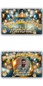 Blue Birthday Backdrop | Black and Gold birthday backdrop | Rose Gold birthday backdrop | Glitter birthday backdrop | Crown birthday backdrop | Pink flower personalised birthday backdrop | |
