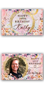 Pink flower personalised birthday backdrop