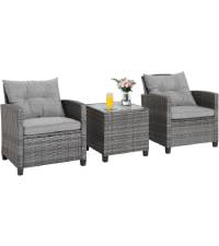 RELAX4LIFE 3 Pieces Outdoor Rattan Bistro Set, Patio Wicker