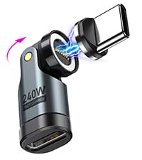 VAFOTON 240W USB C Magnetic Adapter, 9Pin Magnetic USB C Adapter (1 Pack), 540° Rotation USB C to Typ C Magnetic Adapter, Supports PD 240W 5A Quick Charge and Data Transfer, For MacBook/Laptop/Table