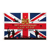 VE DAY 2025 Paper Bunting | VE DAY 2025 Paper Bunting | VE DAY Window Stickers | VE DAY Pin Badge | VE DAY Flag | VE DAY Large Banner | VE DAY Backdrop Banner | |