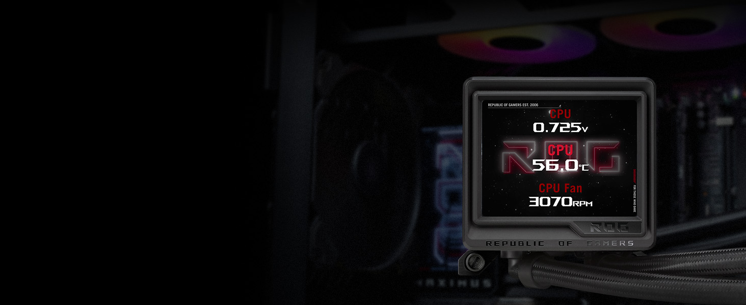 Choose one designed by ROG, or put your own text or JPEG file on display at the heart of your rig.