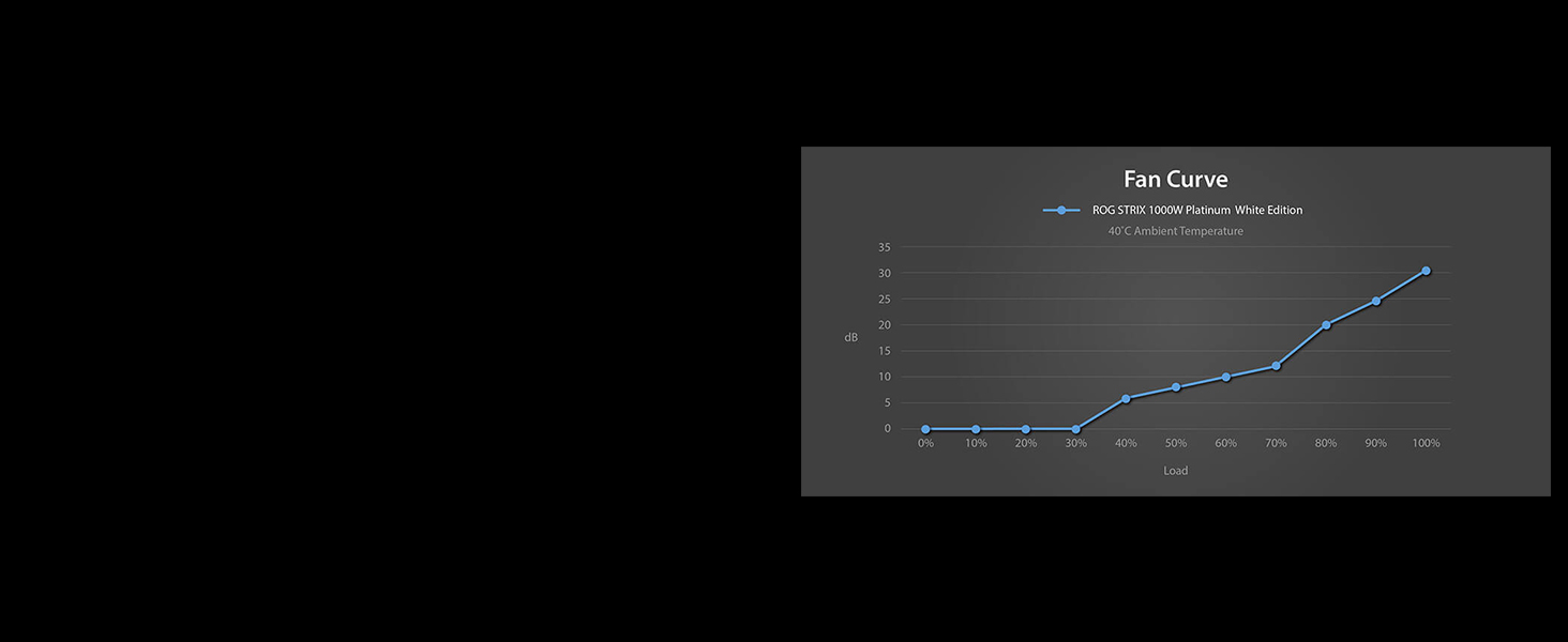 To reduce noise output, the PWM-controlled fan shuts off entirely when the PSU load is 40% or below.