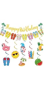 JoyAura Summer Birthday Party Decorations – 10 Pcs Hanging Swirl Banner Beach…
