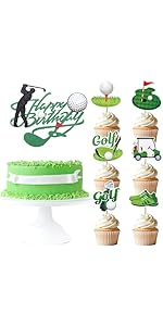 JoyAura Golf Cupcake Toppers Set – 25 Pcs Green and White Happy Birthday Cake…