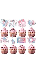 JoyAura Popular Cake Topper Set – 24 Pcs Pink and Blue Super Star Happy Birth…