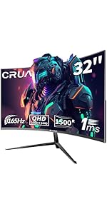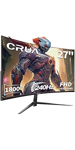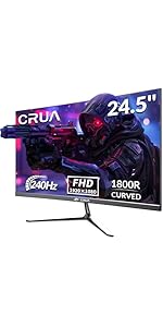 CRUA 24.5 Inch 180hz Curved Gaming Monitor, FHD 1080P