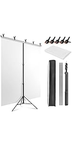 White Backdrop with Stand | Black Backdrop with Stand | Green Screen Background with Stand | |