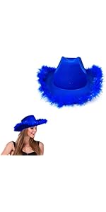 Lizzy 1 x Fluffy Texan Cowboy Hat Unisex Adult Wide Brim Felt Fluffy Feather …