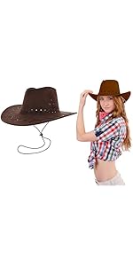 Lizzy 1 x Adult Cowboy Hat Faux Suede Material with Cross Hatch Stitching Det…