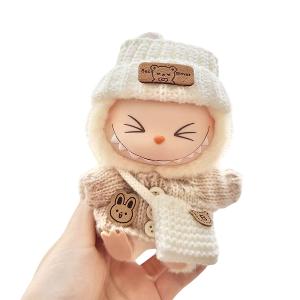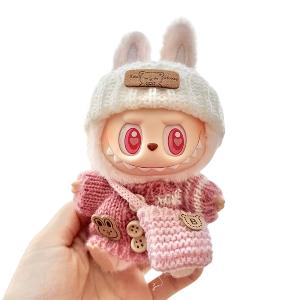 Mini Doll's Labubu Outfit Accessories, Sweater Hat Shoulder Bag Exquisite Outfit Set for 17cm Doll Replacement(No Doll)