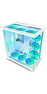 PC CASE ATX 9 PWM ARGB Fans Pre-Installed, Mid-Tower Gaming PC Case, Panoramic Tempered Glass Computer Case with Type-C,360mm Radiator Support ,white