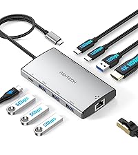 RSHTECH M.2 NVMe/SATA SSD Enclosure, 5-in-1 Aluminum 10Gbps USB C Hub with 3 USB 3.2 Data Ports (2C+1A), 100W PD and M2 SSD Docking Station, External USB-C to M.2 Caddy for Laptops (RSH-D05P)