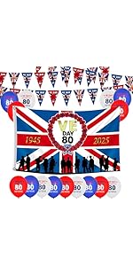 59PCS VE Day 80th Anniversary Decoration Set, 2025 VE Day Flag, 40PCS Bunting…