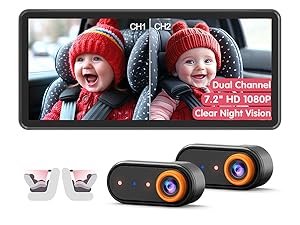 Baby Car Camera for 2 Kids, Dual Channel with 7.2″ 1080P