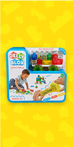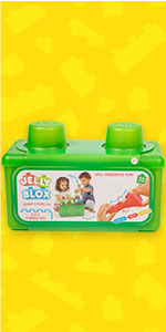 | The perfect introduction to the world of Jelly Blox with 11pcs to start your creative adventure… because squishy is more fun! | Filled with 20pcs to expand your creative builds – take your Jelly Blox to the next level. | With 35 included Blox to build your very own Jelly Blox truck! Fitted with squishy, sensory wheels; play & roll your vehicle. | Flip the lid and build your Jelly Blox creations on top with 30 included Blox, when you’re done, use as a storage case for your Jelly Blox collection. |