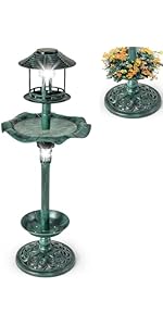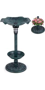 - Apart from being used as a bird bath, this outdoor bird bath also serves as bird feeder to hold birdseed for birds to eat.