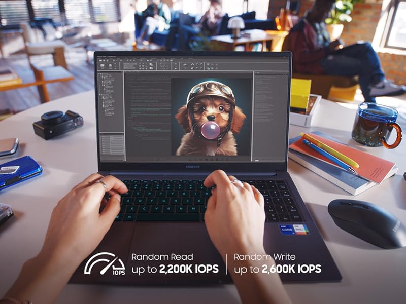 Intelligence in the service of performance. Break down any barriers in both work and leisure with an integrated AI PC and AI content generation, thanks to the SSD 9100 PRO’s outstanding random read/write speed of up to 2,200K/2,600K IOPS. Fast loading, maximum playback fluidity and no more interruptions. ³