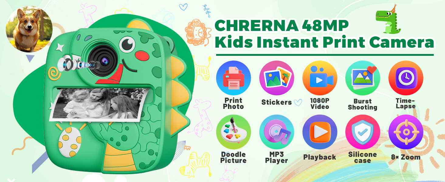 CHRERNA Instant Print Camera for Kids, Christmas Birthday